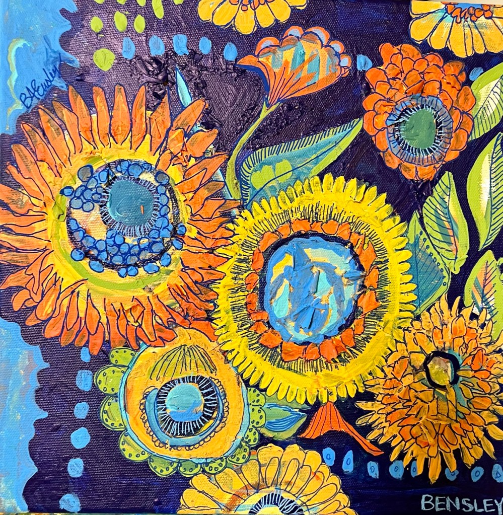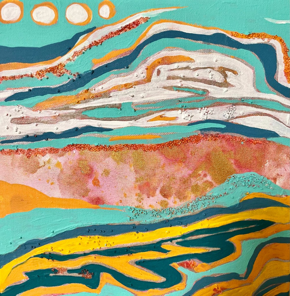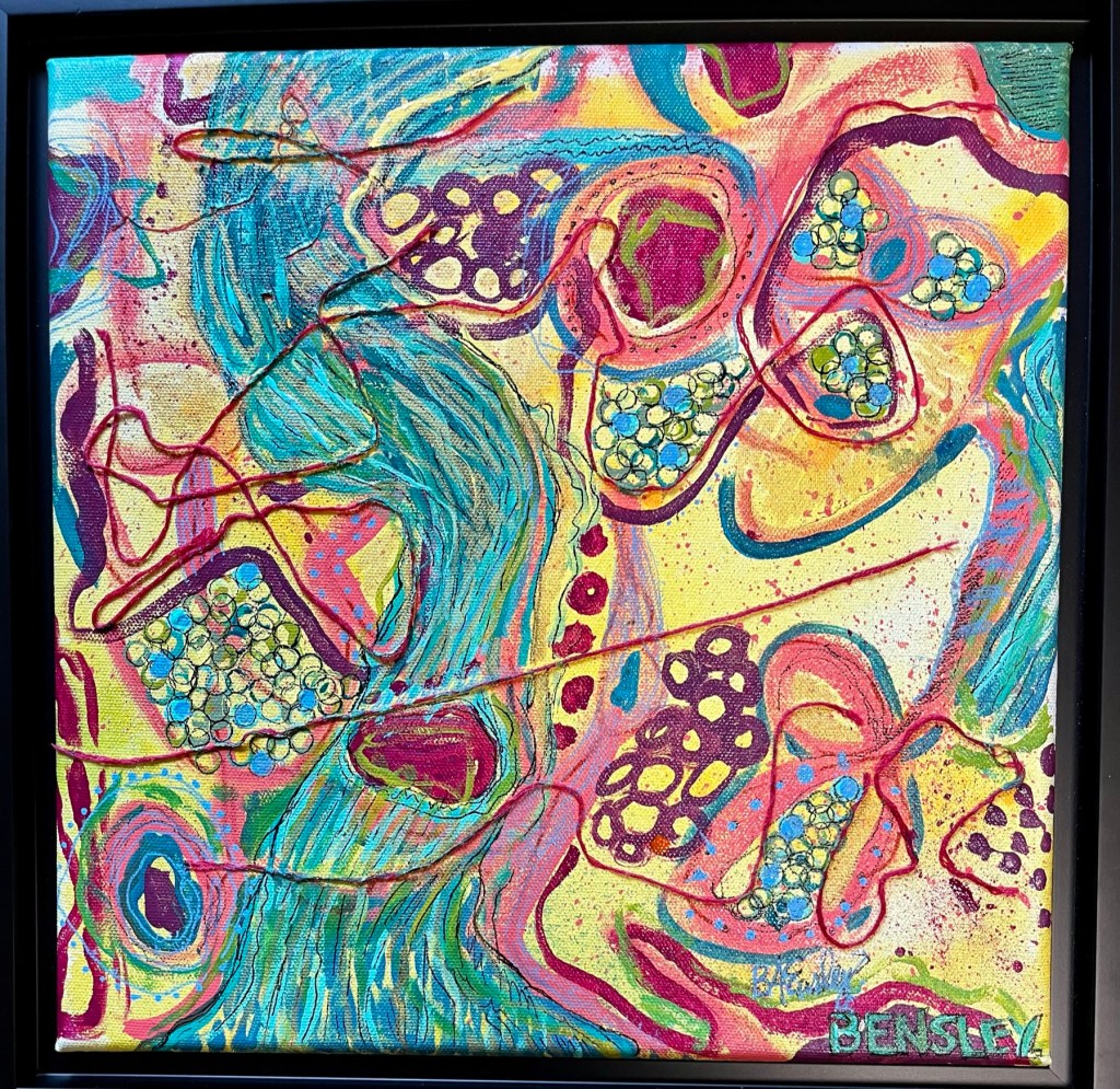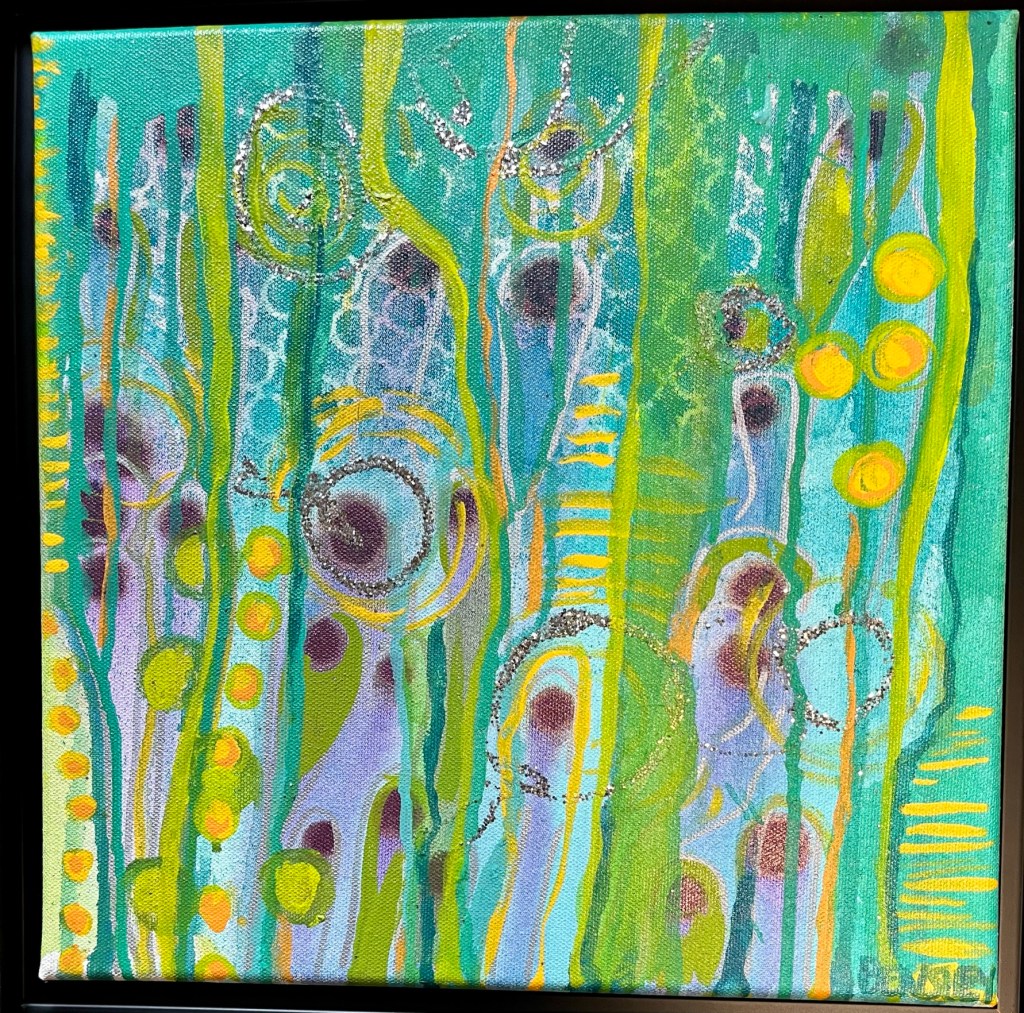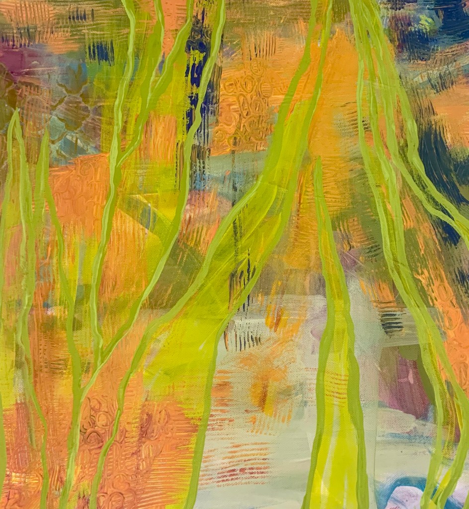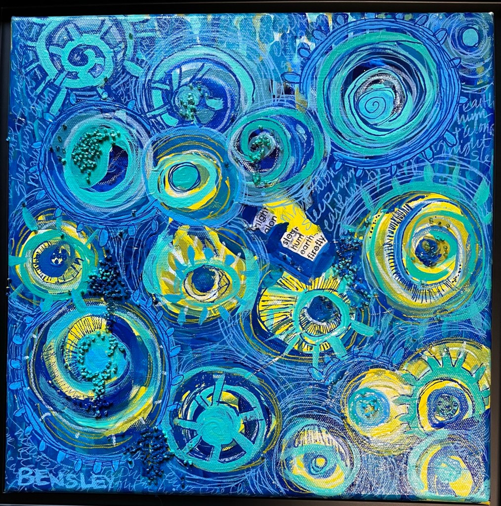 I have interspersed these beautiful mix media pieces with personal poems I have written over the years. It has been another way besides through painting that I have found expression and healing.